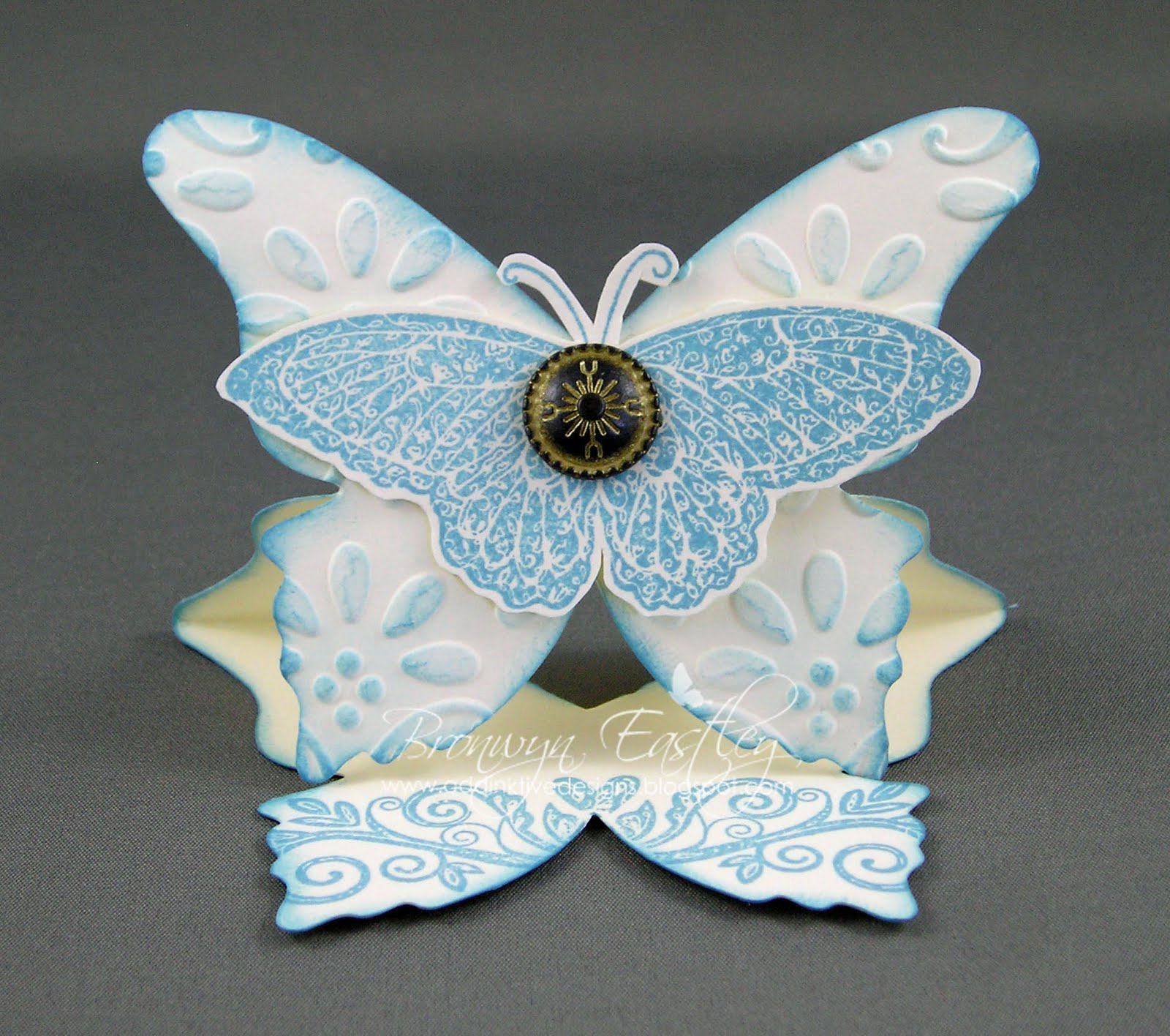Hi Bronwyn. I was over at Marelle Taylor's this morning looking through her convention swaps and came across one of your butterfly easel cards. It's even prettier in real life :)